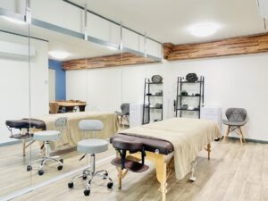・リクライニング付き施術台とリクライニングチェアと両方あるので、色々な施術が可能です。